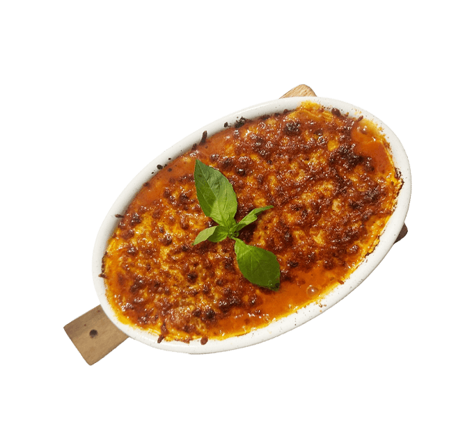 Mit herzhaftem Hackfleisch, feiner Béchamelsauce und Kochschinken, goldbraun mit Käse überbacken.